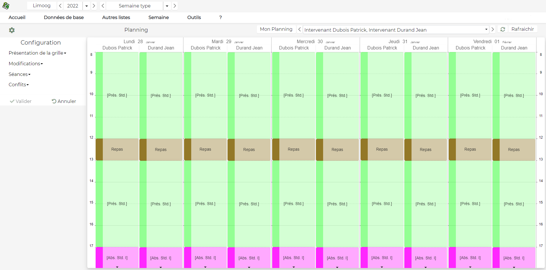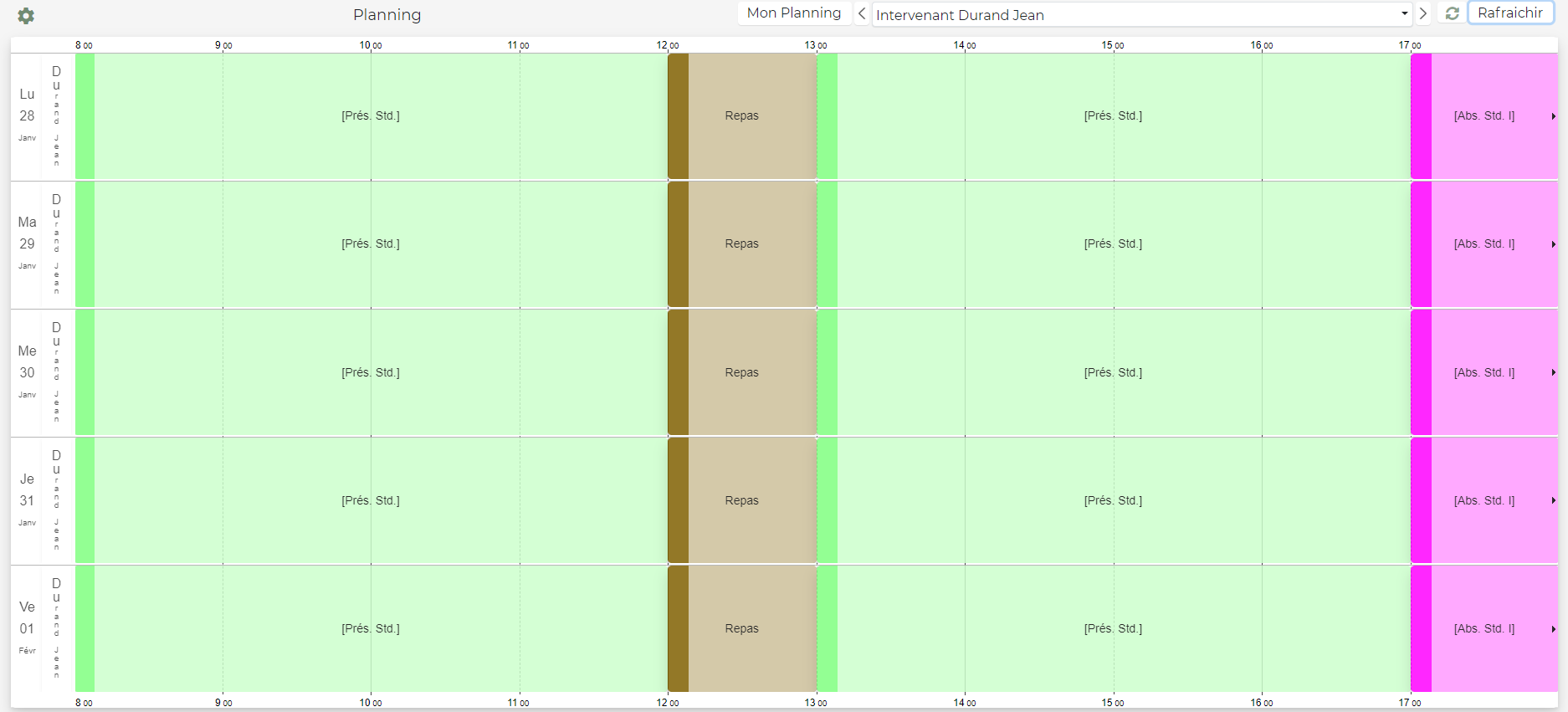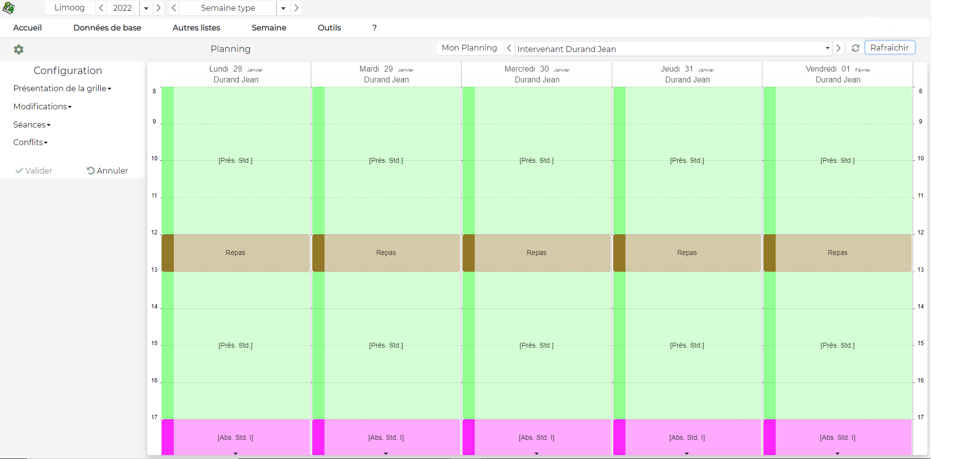 Vous pourrez définir vos types d’absences qu’elles soient travaillées ou non, les positionner sur les modèles individuels d’horaires de présences, vous pourrez définir les cycles de travail et placer les absences exceptionnelles et comptabiliser l’annualisation, les congés etc.