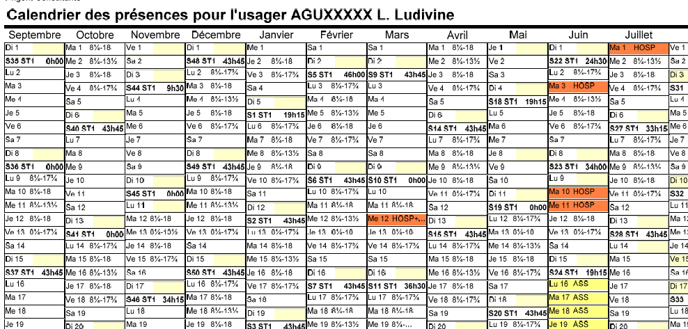Les horaires de présence des usagers sont gérés de la même façon que ceux des salariés : PAA permet de définir vos types d’absences (facturées ou non) et des plannings modèles (semaine en stage, en centre, vacances etc.). PAA pourra en déduire les éléments pour la facturation. Des statistiques sur l’assiduité dans l’établissement pourront être établies en fonction du suivi de leurs absences.